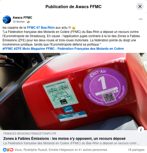 Article de presse : https://france3-regions.franceinfo.fr/grand-est/bas-rhin/strasbourg-0/zones-a-faibles-emissions-les-motos-s-y-opposent-un-recours-depose-3106210.html